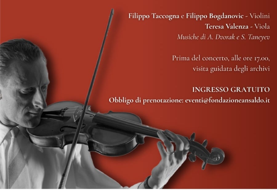 Durante l’evento risuoneranno le note dei violini di Filippo Taccogna e Filippo Bogdanovic e della viola di Teresa Valenza. L’evento sarà aperto a tutti e gratuito.